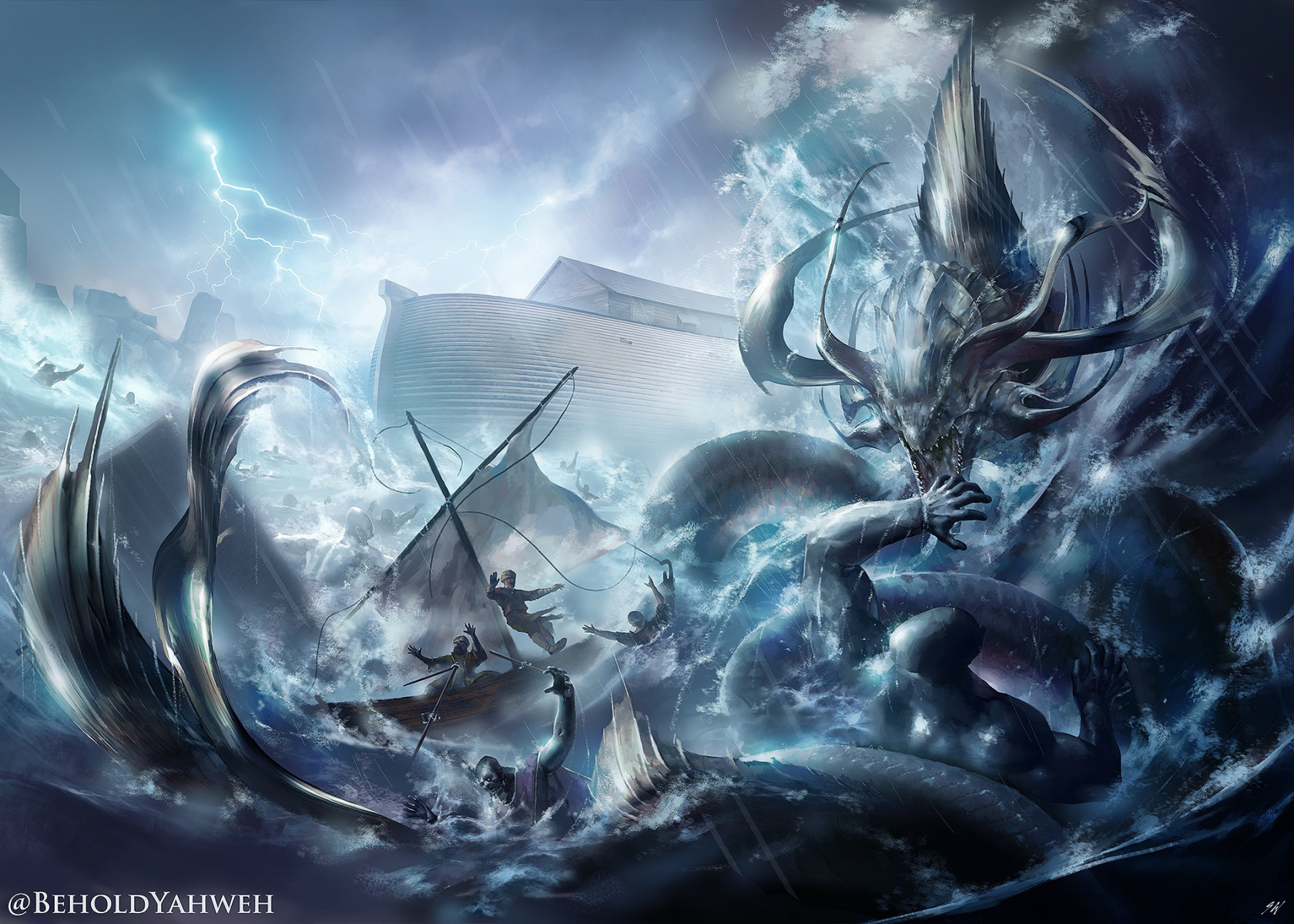 Again, the Most High would have to arise from his throne to address the rebellion of both humans and elohim. The Most High commissioned four archangels to instruct Noah on how to be saved, stir the giant bastards to kill each other in war, and bind the watchers responsible for this widespread corruption. The watchers would be made to see their children perish and then be bound in the underworld until their judgment at the end of the age. Any who were condemned henceforth would be bound together with them in the abyss. The spirits proceeding from the slain giants would have no place in heaven, despite their fathers. Their spirits would be cursed to roam the earth in discomfort and torment humanity known as evil spirits. Then, the Most High sent a Flood that destroyed life on the earth and only Noah and seven others along with animals gathered to them were saved to try again to fulfill the Most High's intended plan.